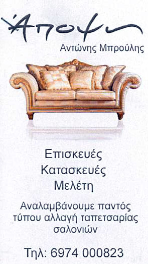 Σαλόνια, κρεβατοκάμαρες, τραπεζαρίες, σύνθετα, μικροέπιπλα, επώνυμα στρώματα, ειδικές παραγγελίες, μελέτη χώρου δωρεάς.
